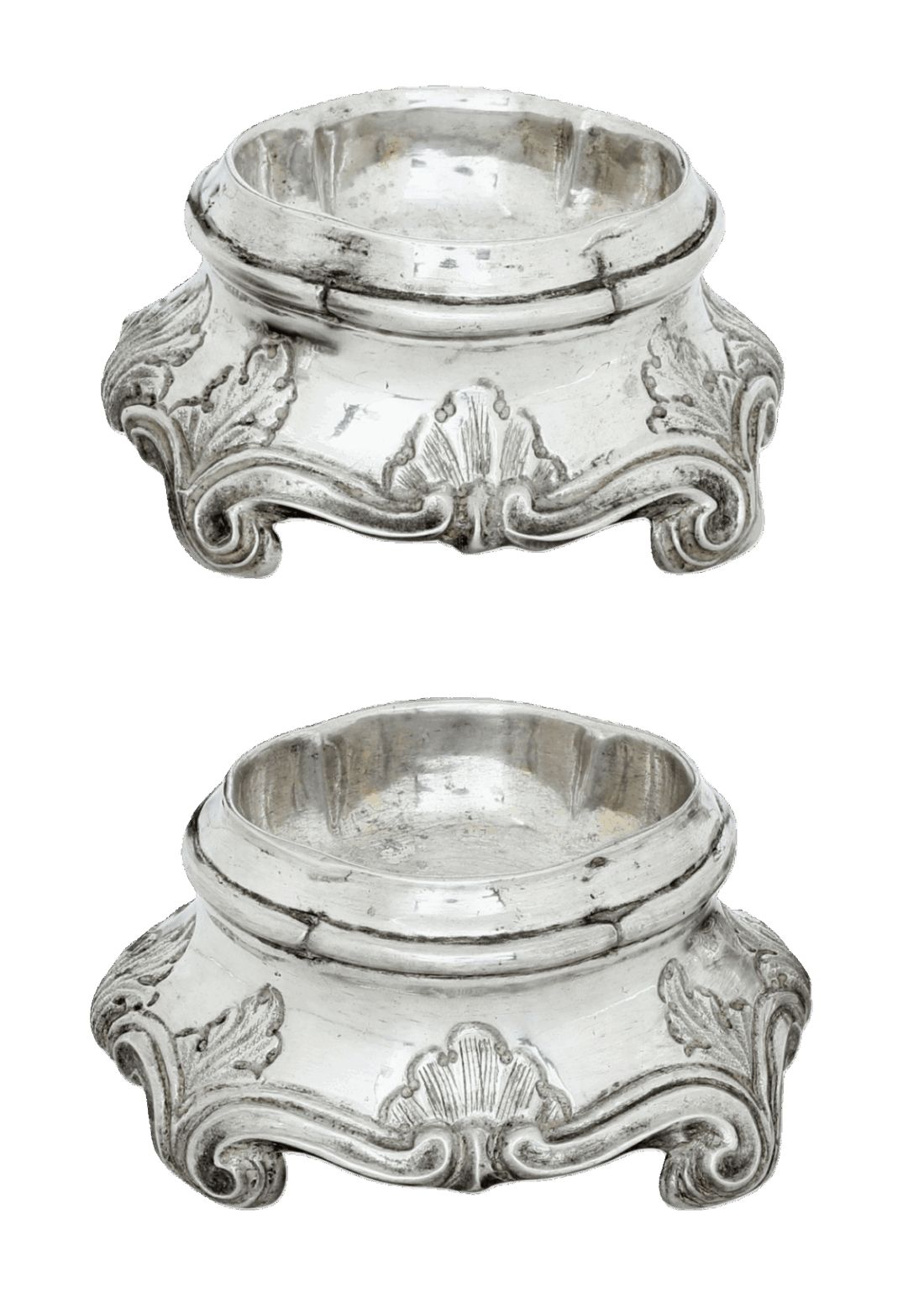 Corpo ovale sagomato e bordo nervato con decori a volute rocaille e motivi fogliacei. Marchio di ricontrollo con croce mauriziana e delfino