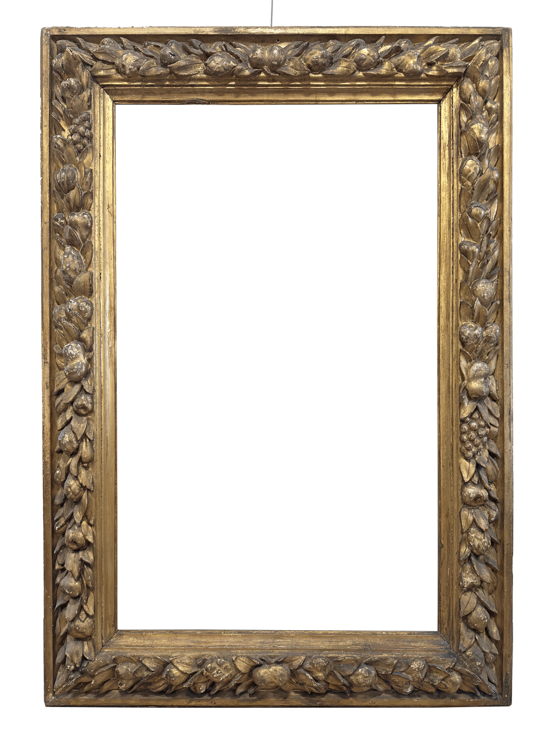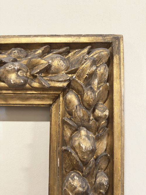 Presenta una ricca decorazione a motivi vegetali e fruttali a rilievo, caratteristici della produzione del pieno Rinascimento.