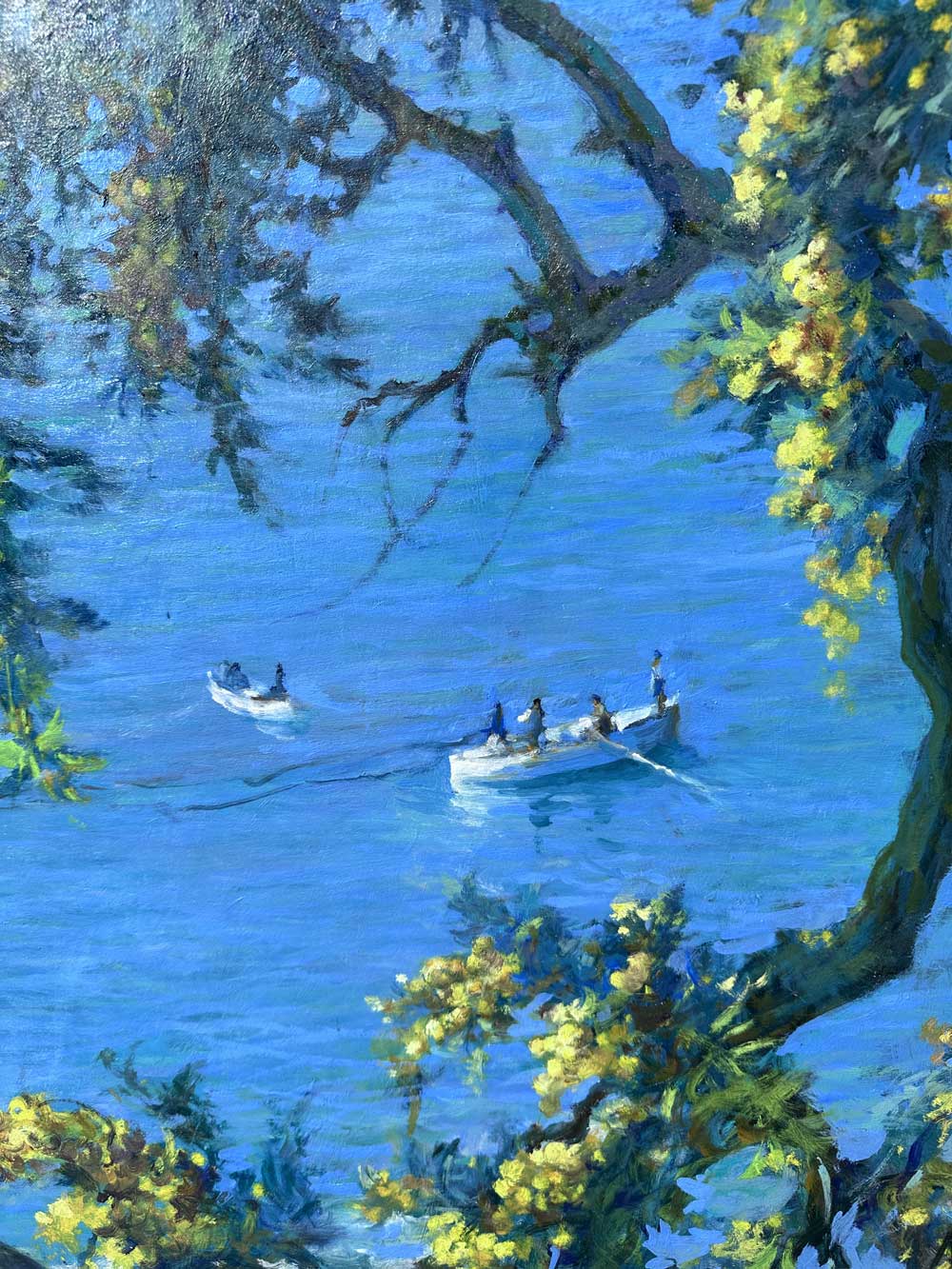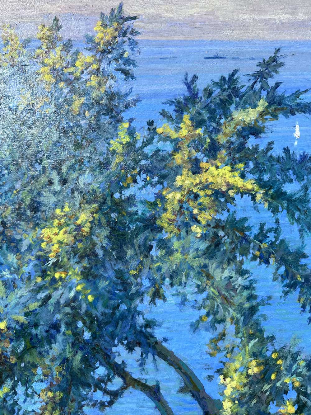 Antonio Discovolo (Bologna 1874 Bonassola SP 1956) Albero di mimosa sul mare, dipinto a olio su tavola
