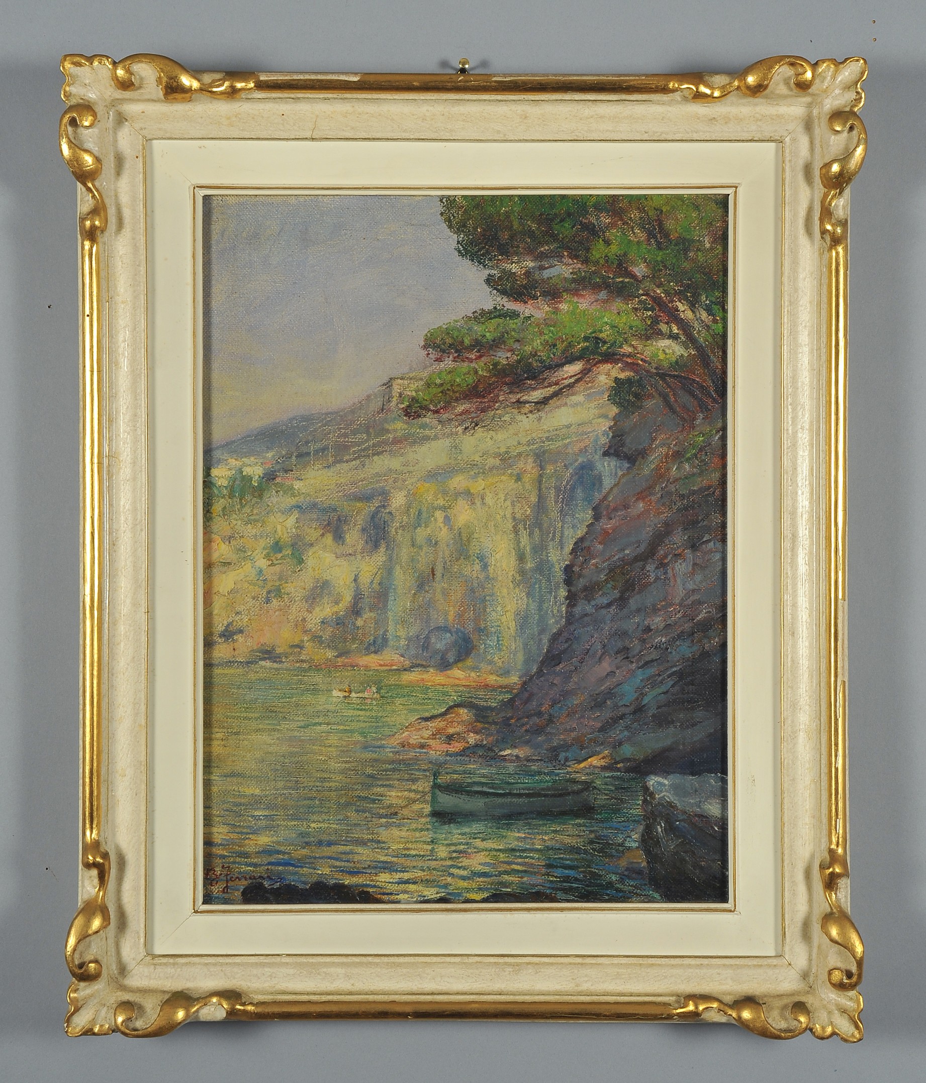 Berto Ferrari (Bogliasco GE 1887 Genova 1965) Pineta sul mare a Pieve Ligure, olio su tela applicata su tavoletta firmato in basso a destra