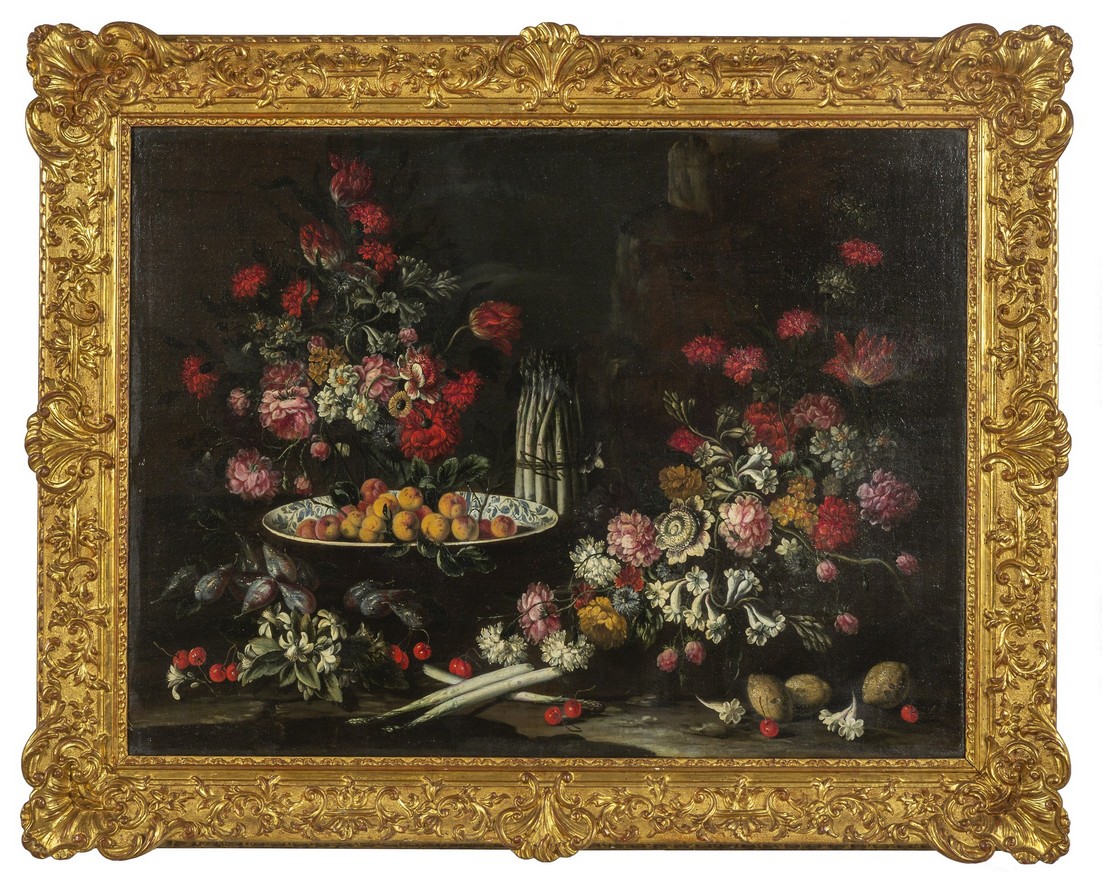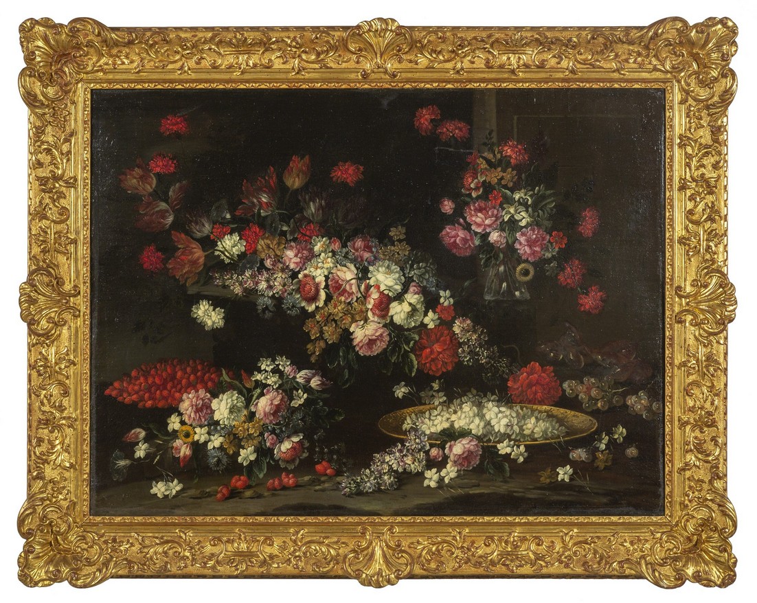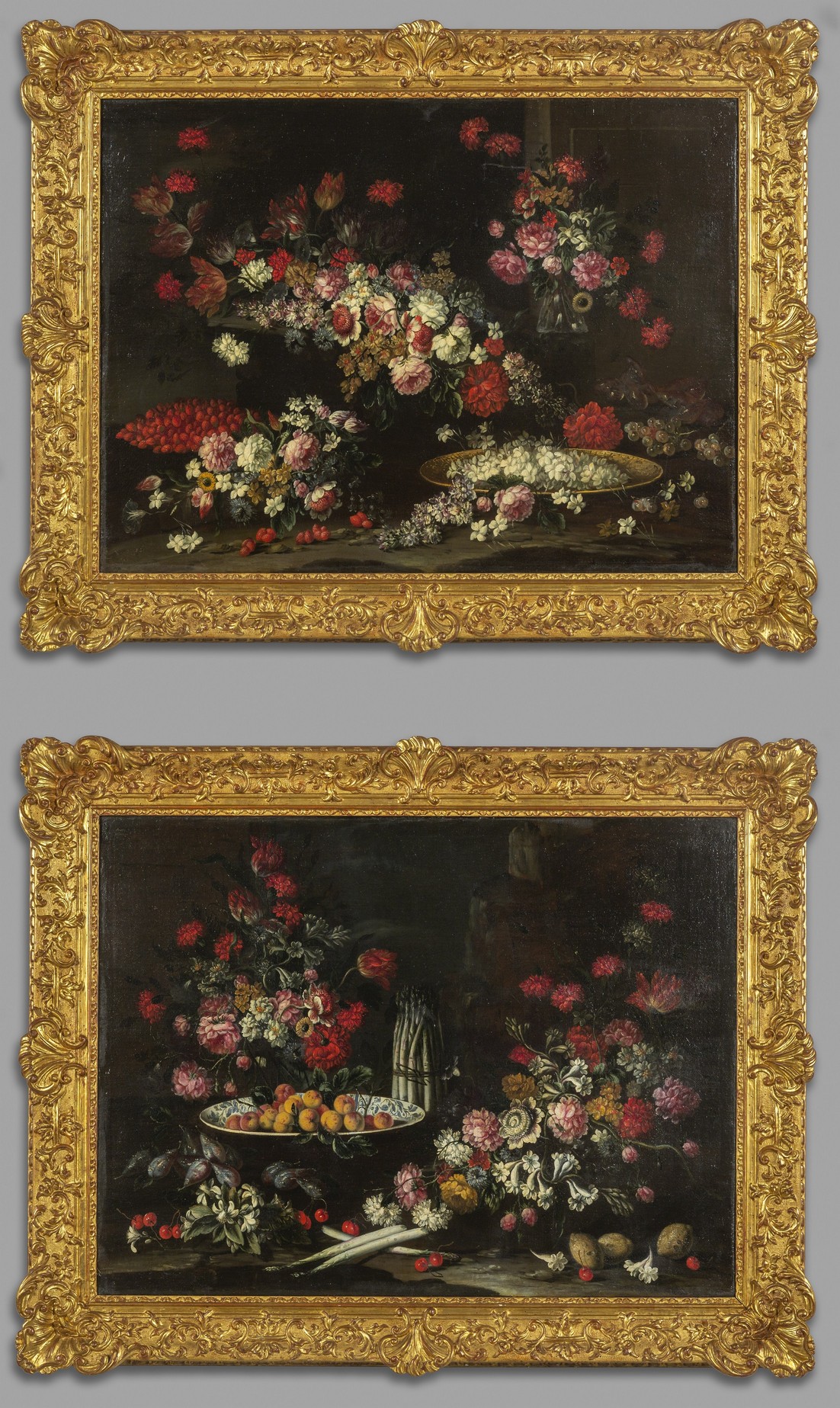 Francesca Volò Smiller detta Vincenzina (Milano 1657 1700) Fiori e frutta, coppia di oli su tela