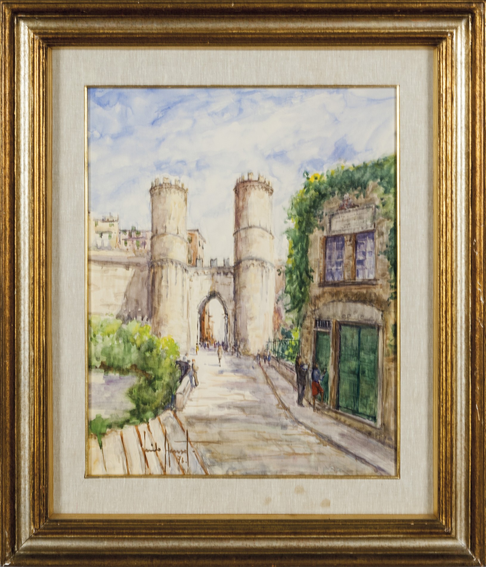 Guido Hanset (Genova 1910 1992) Porta Soprana, acquarello firmato in basso a sinistra e datato 1976