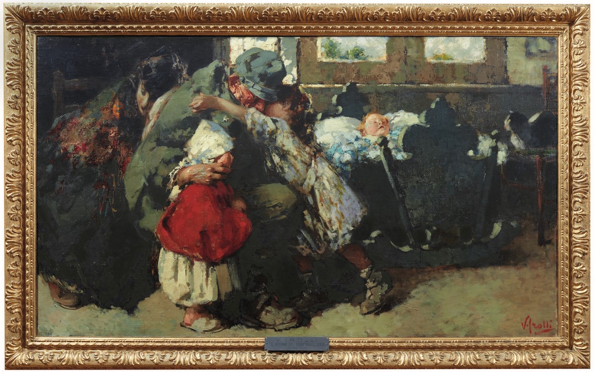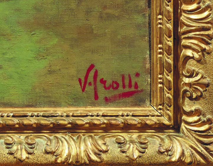 Vincenzo Irolli (Napoli 1860 1949) Il ritorno del territoriale, olio su tela, firmato in basso a destra, cornice dorata d’origine
