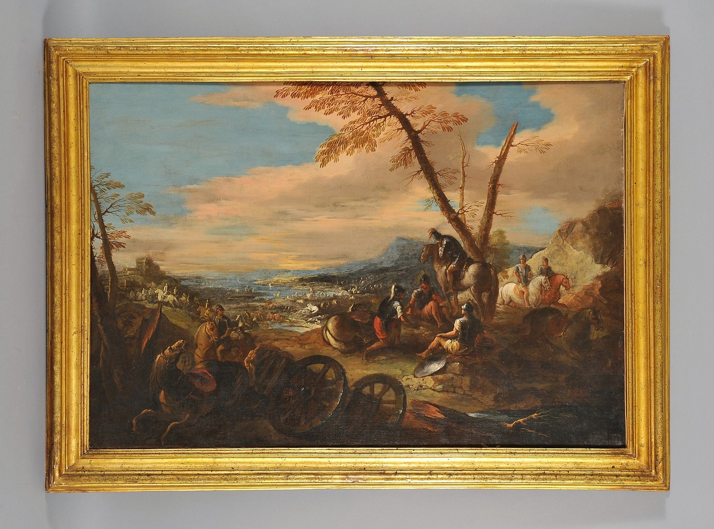 Joseph Parrocel detto ‘Parrocel des Batailles’ (Brignoles 1646 Parigi 1704) coppia di oli su tela in cornice dorata di epoca