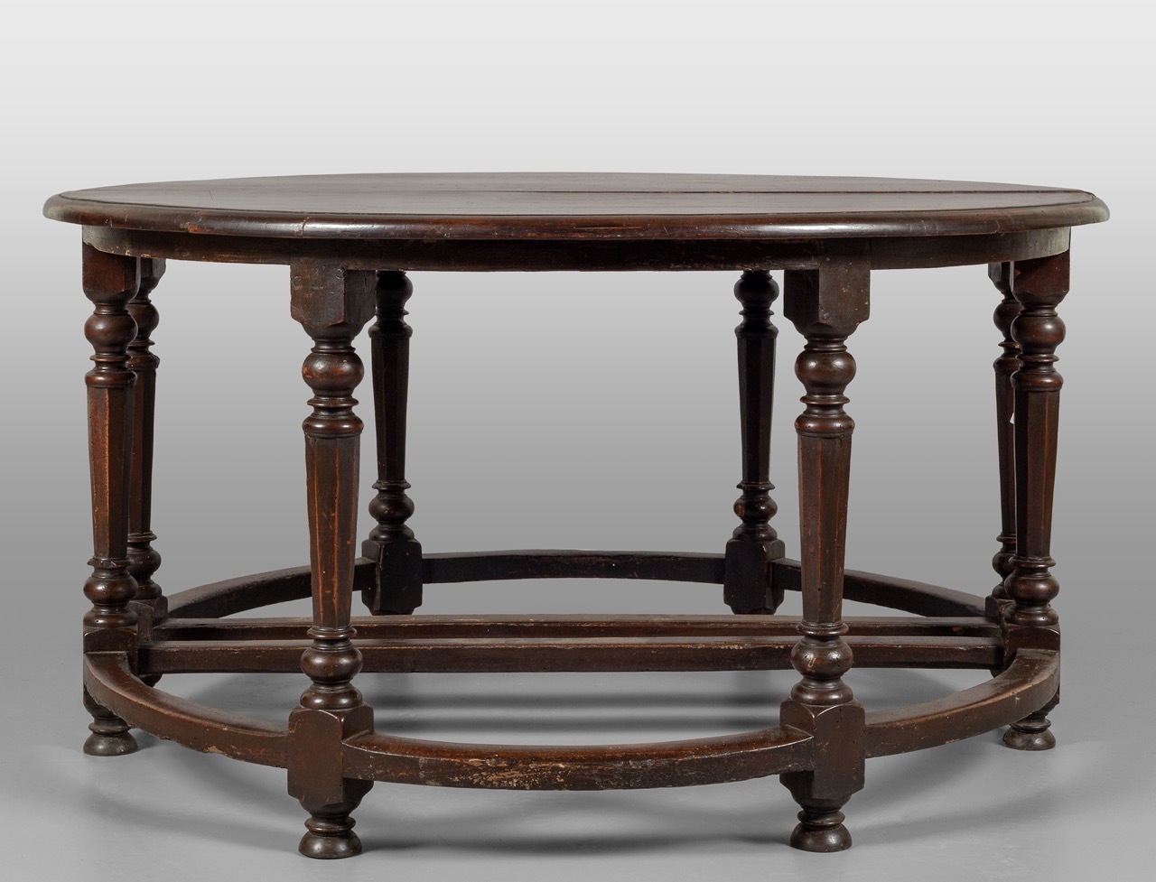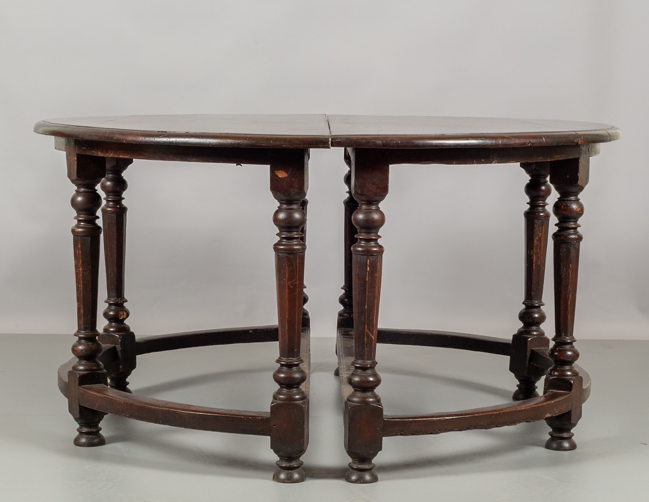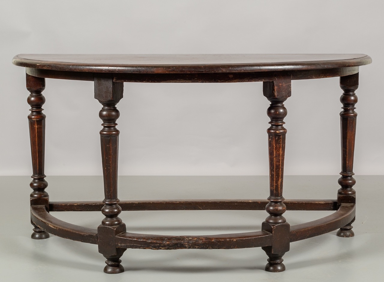 Coppia di importanti mezzi tavoli Luigi XIV in noce, Genova inizi secolo XVIII