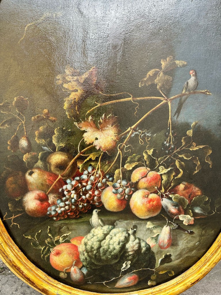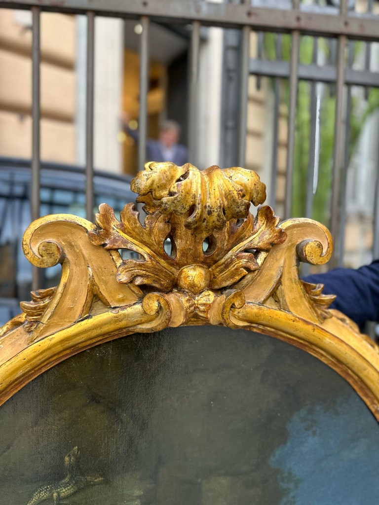 Dipinto ovale in cornice coeva con cimasa