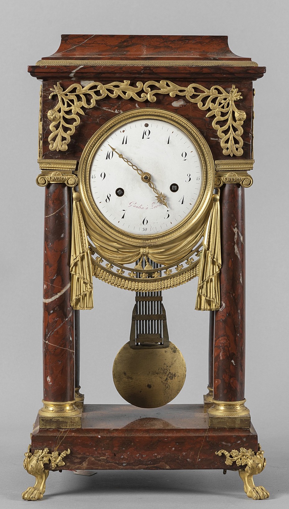 Orologio Napoleone III in marmo Rosso Francia e bronzo dorato, firmato Gaulin à Paris, Francia secolo XIX