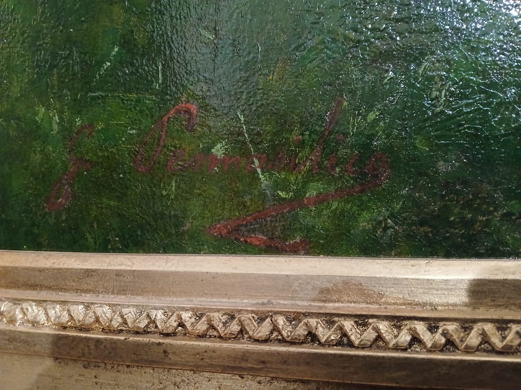 La composizione è armoniosa e dettagliata, con una cura straordinaria per i particolari della natura e degli animali, che conferisce al dipinto un’atmosfera serena e contemplativa. L’opera riflette l’abilità di Pennasilico nel fondere la tradizione accademica con una visione poetica della realtà, rendendola una testimonianza preziosa della pittura italiana di fine Ottocento. Ideale per collezionisti e amanti dell’arte che cercano pezzi unici dal forte valore storico ed estetico.