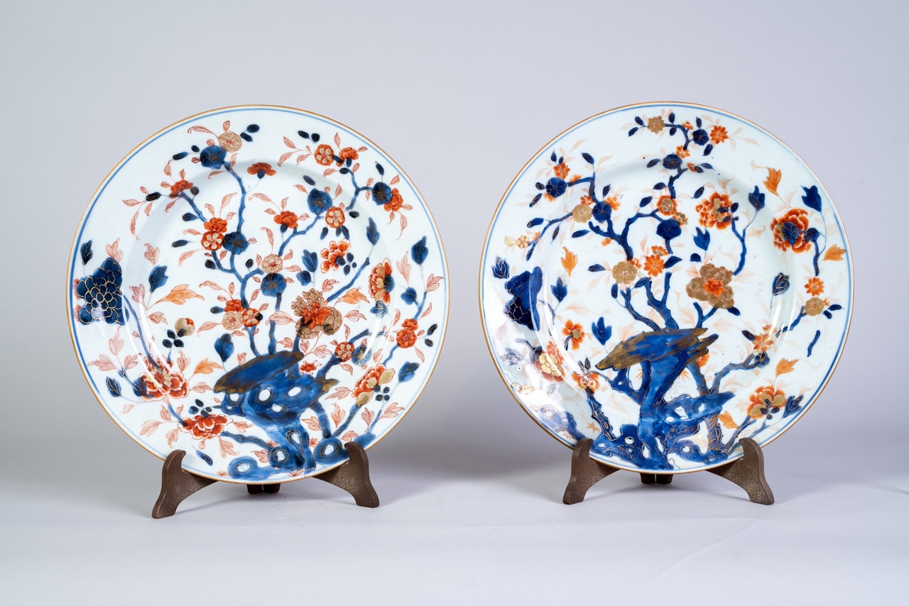 Coppia di piatti in porcellana Imari decorati in oro a freddo, Giappone secolo XVIII