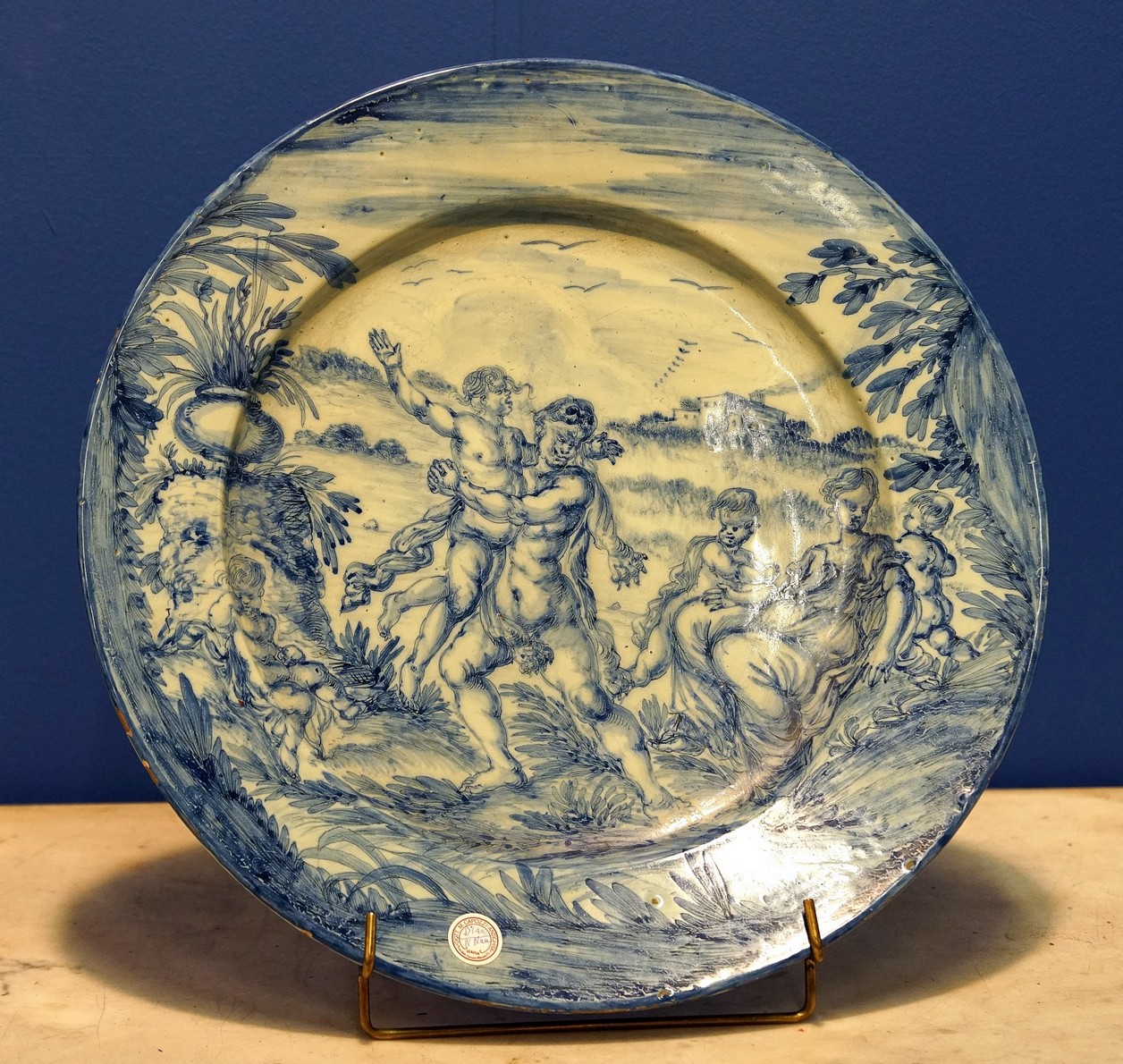 L’impianto pittorico della decorazione e la maestria nel proporre il volume nelle figure, fa pensare ad un talento come il Guidobono o comunque ad un grande pittore ceramista di vaglia
