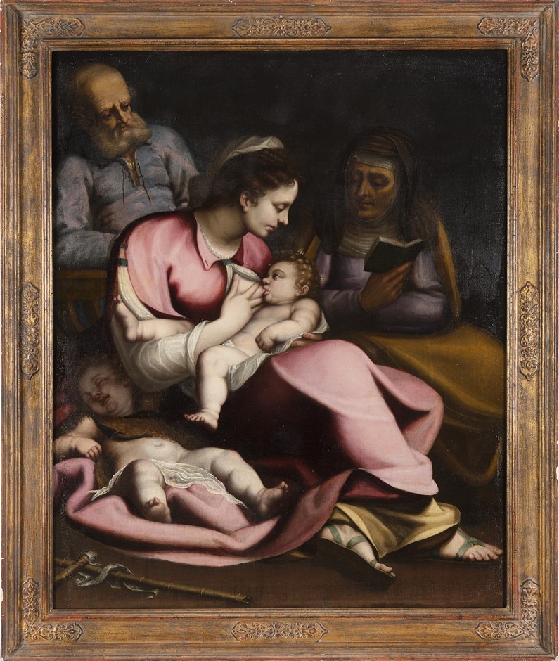 La Madonna allatta il Bambino alla presenza di San Giuseppe, Santa Elisabetta e San Giovannino, olio su tela siglato “P. F. P.” e datato 1589 o 1599