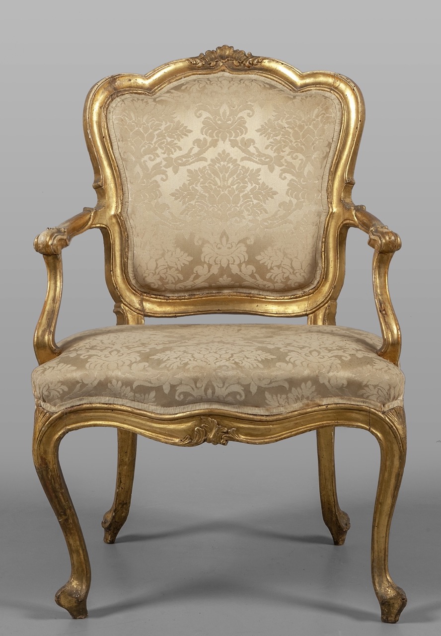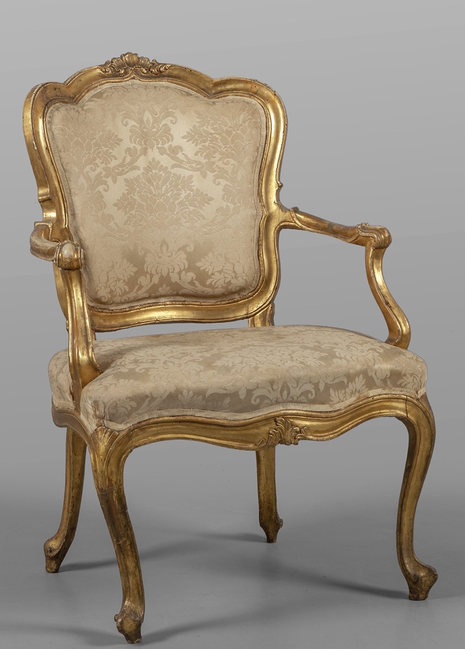 Poltroncina Luigi XV in legno intagliato e dorato, Venezia secolo XVIII