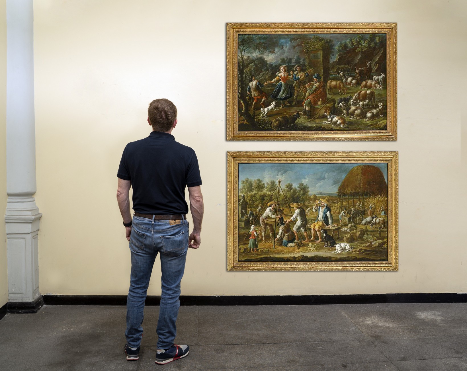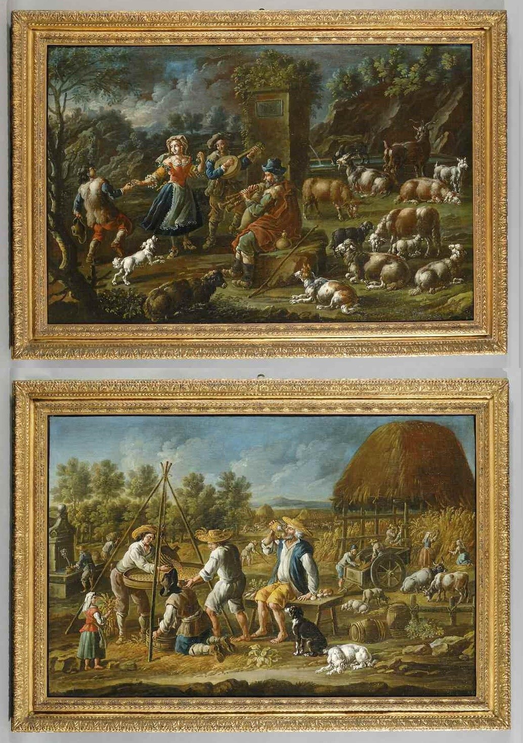 Jacob Roos detto Rosa da Napoli (Roma 1682 Napoli 1730) Scene di vita con personaggi e animali, copia di oli su tela
