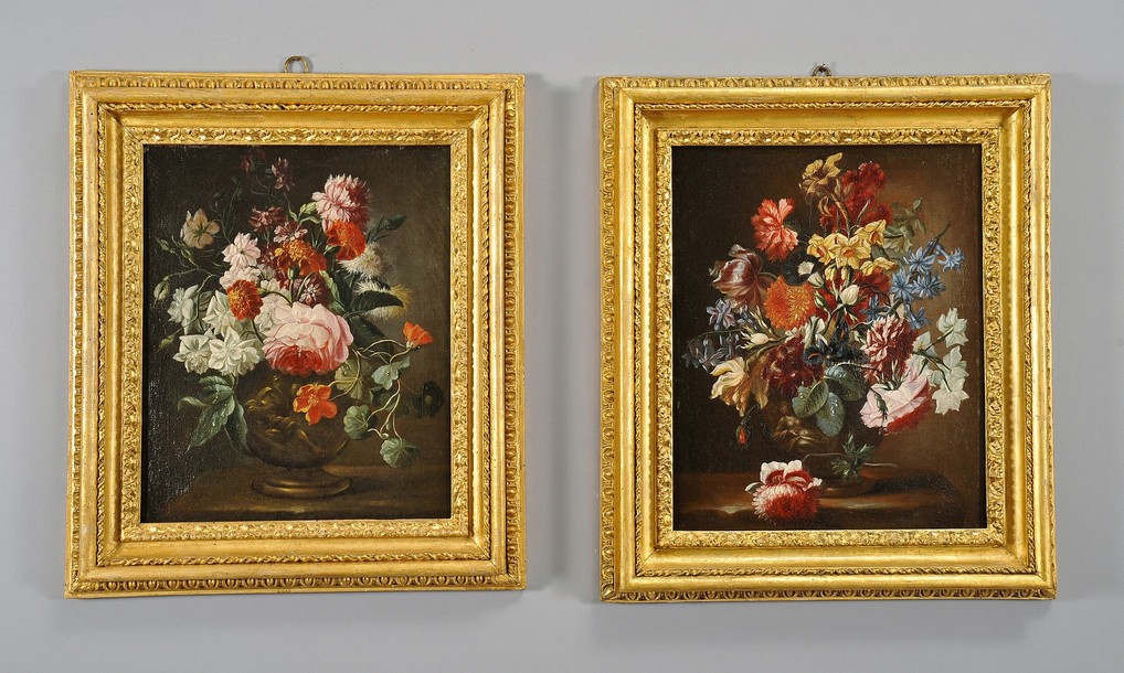 … Molto amato dai Medici e dalle più note famiglie patrizie toscane, lo Scacciati fu autore di opere di altissima qualità stilistica, dedicate in prevalenza a composizioni floreali, definite con sapiente perizia pittorica ed esaltate da esclusivi effetti cromatici cfr… Andrea Scacciati. Pittore di fiori, frutta e animali a Firenze in età tardobarocca di Bellesi Sandro