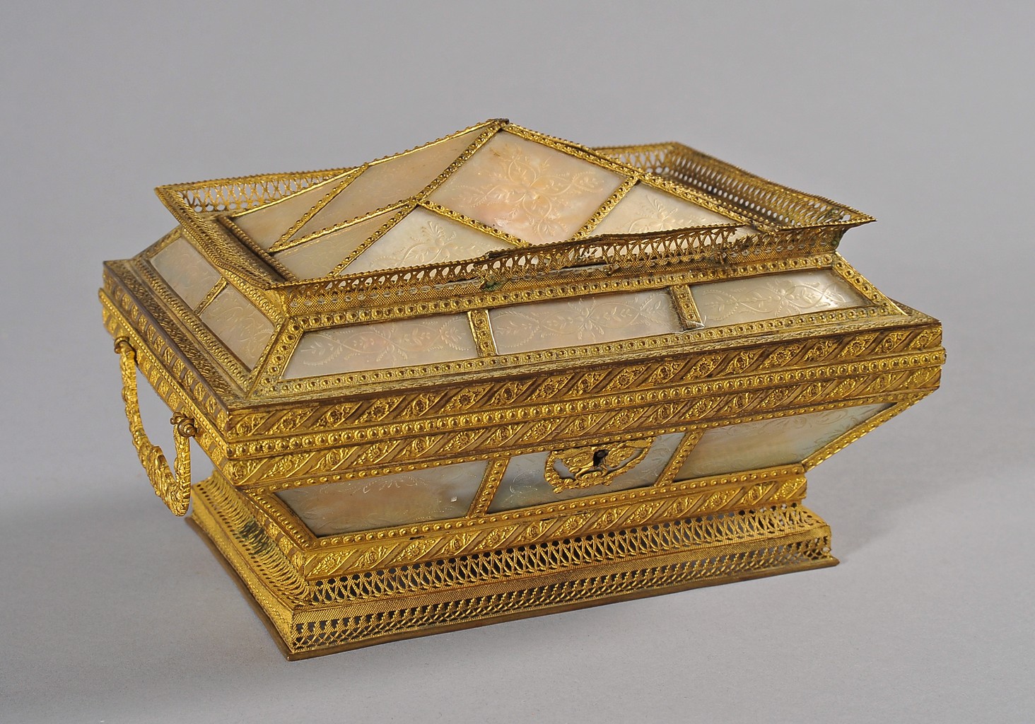 Scatola in bronzo dorato e madreperla incisa Francia periodo del Carlo X circa 1820 1830