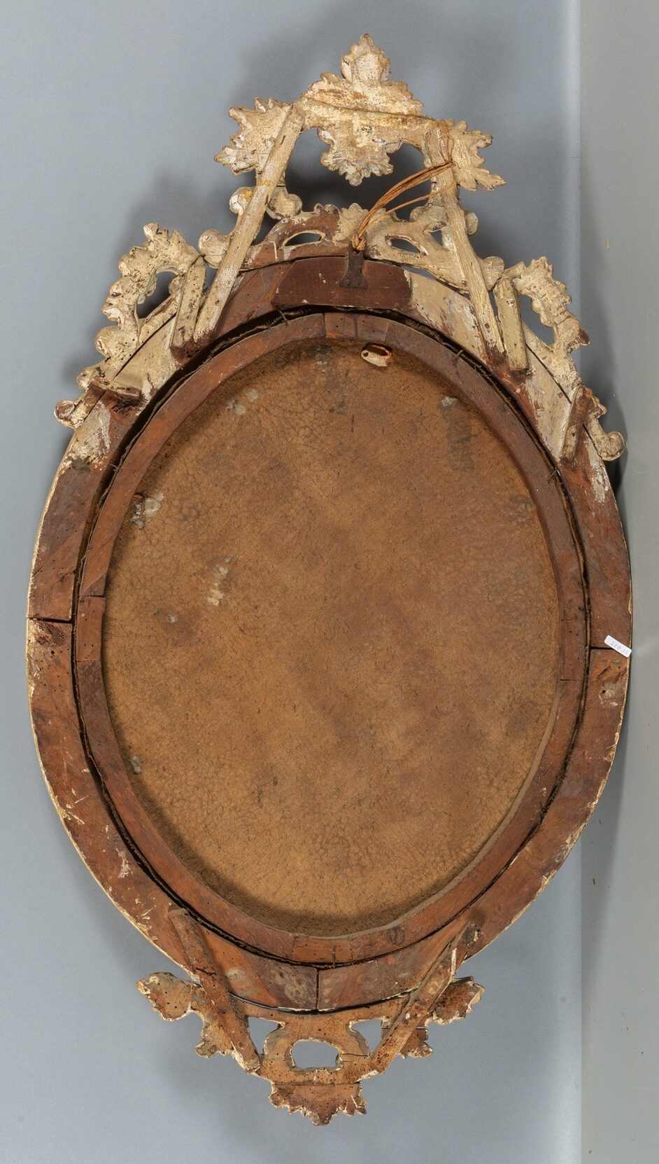 L’educazione della Vergine, olio di forma ovale con cornice in legno intagliato, dorato e laccato.