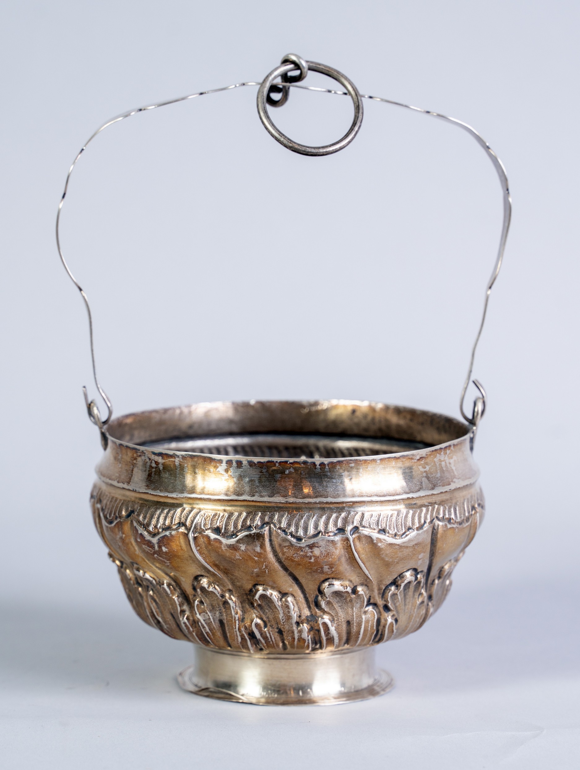 Secchiello Luigi XV in argento sbalzato a motivo di Pellacce, Genova punzone della Torretta datato 1789