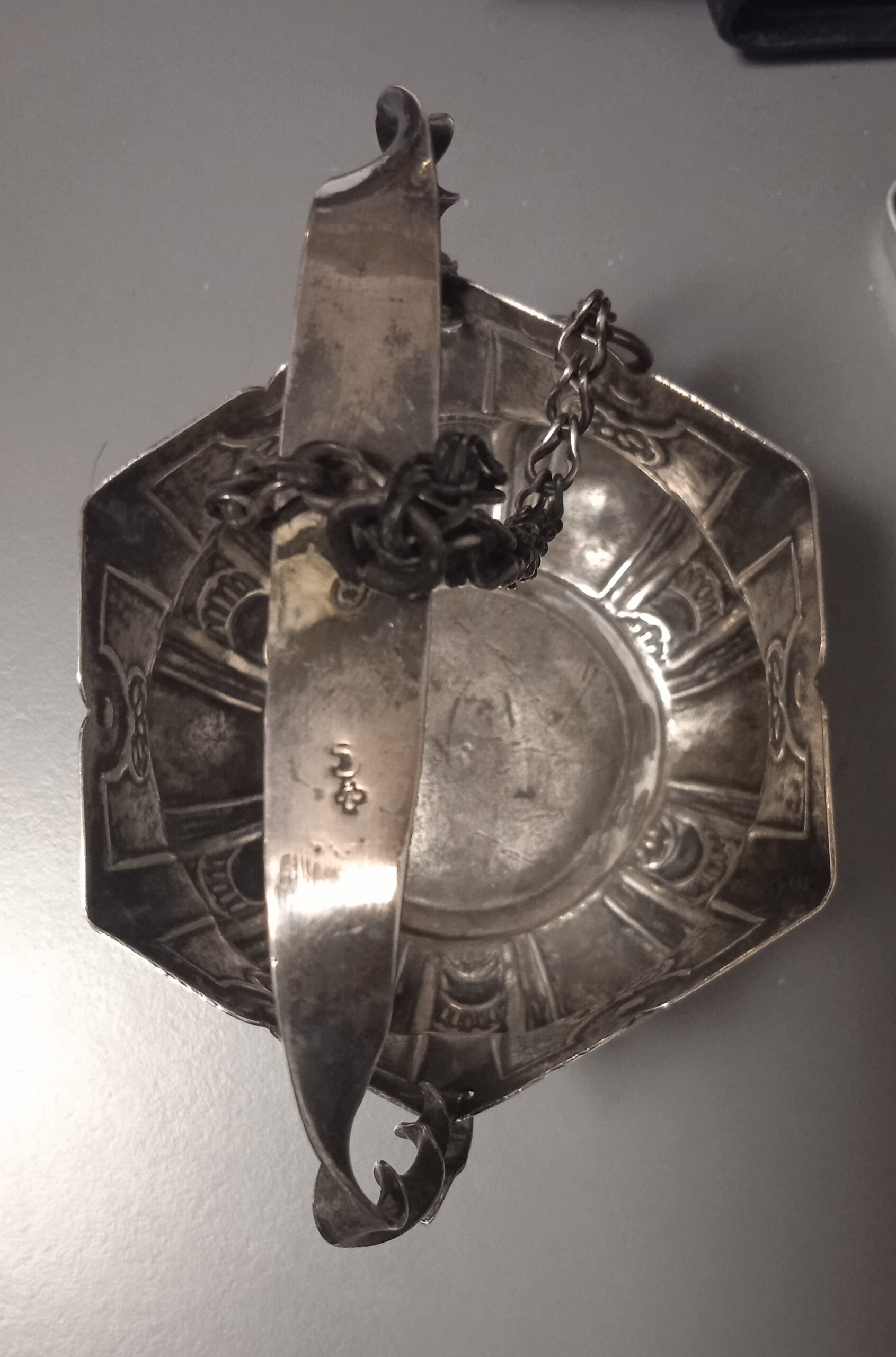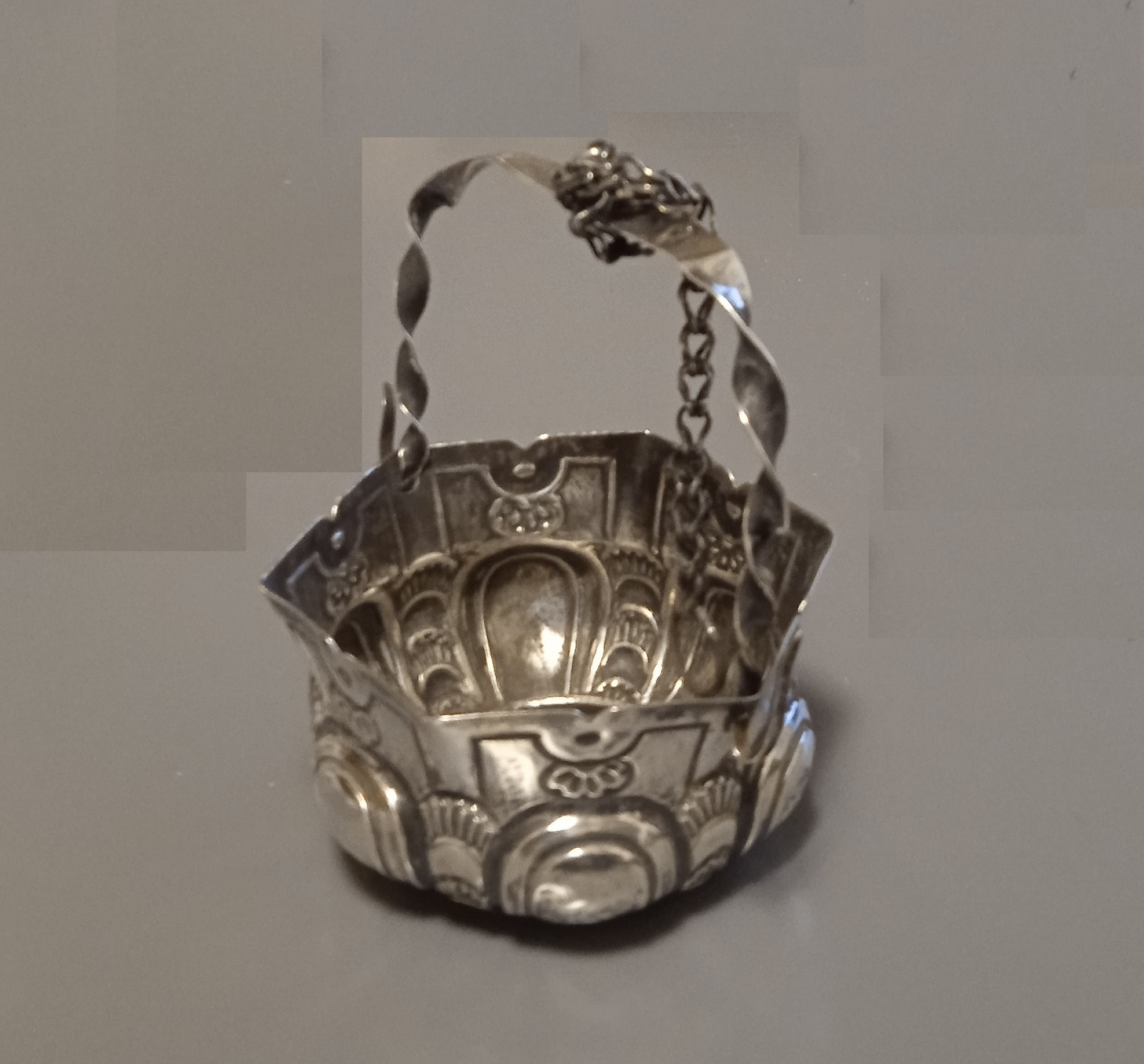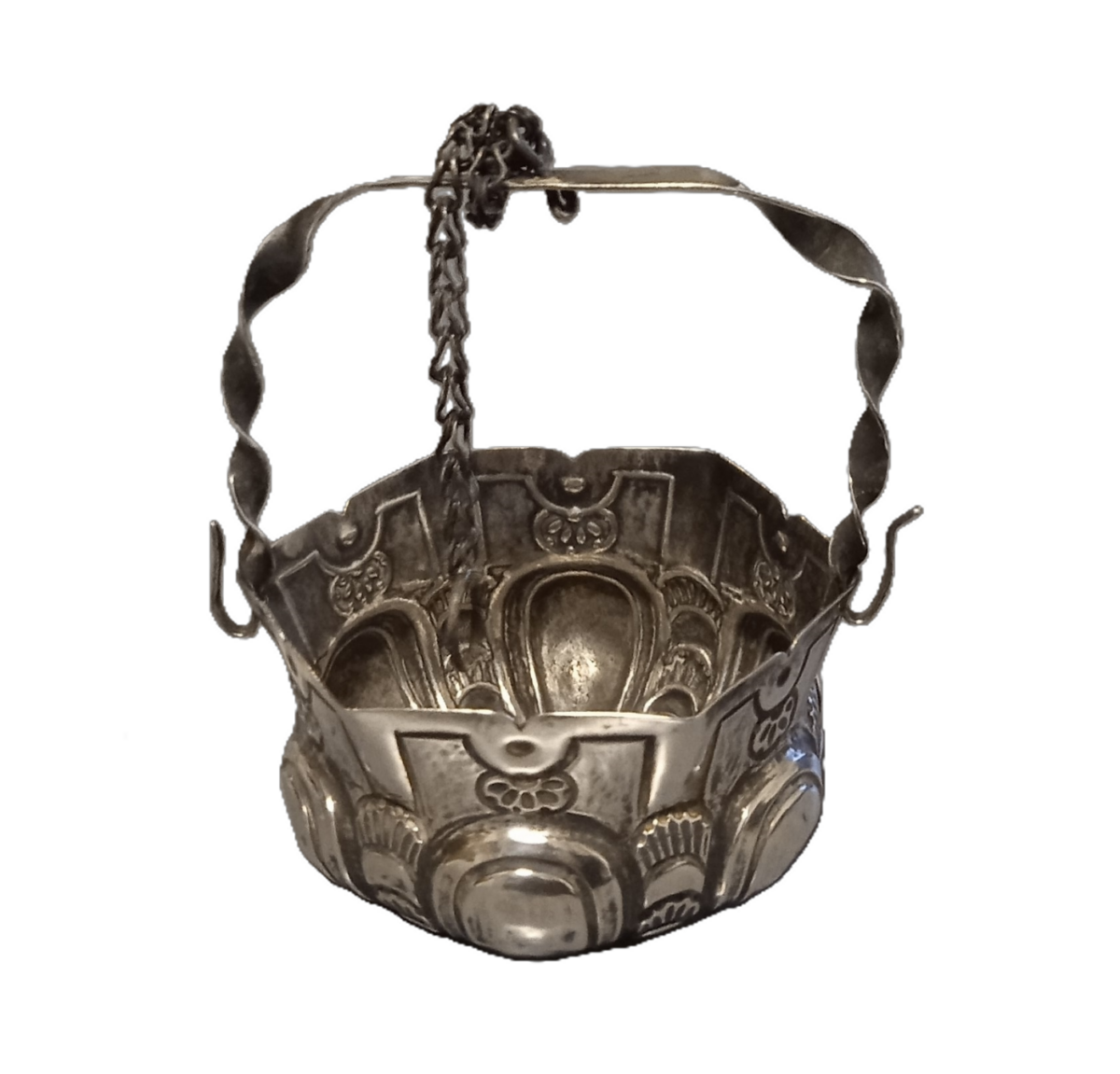 Secchiello Luigi XIV in argento sbalzato, Genova inizi secolo XVIII