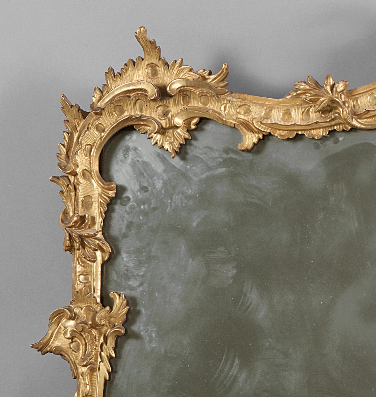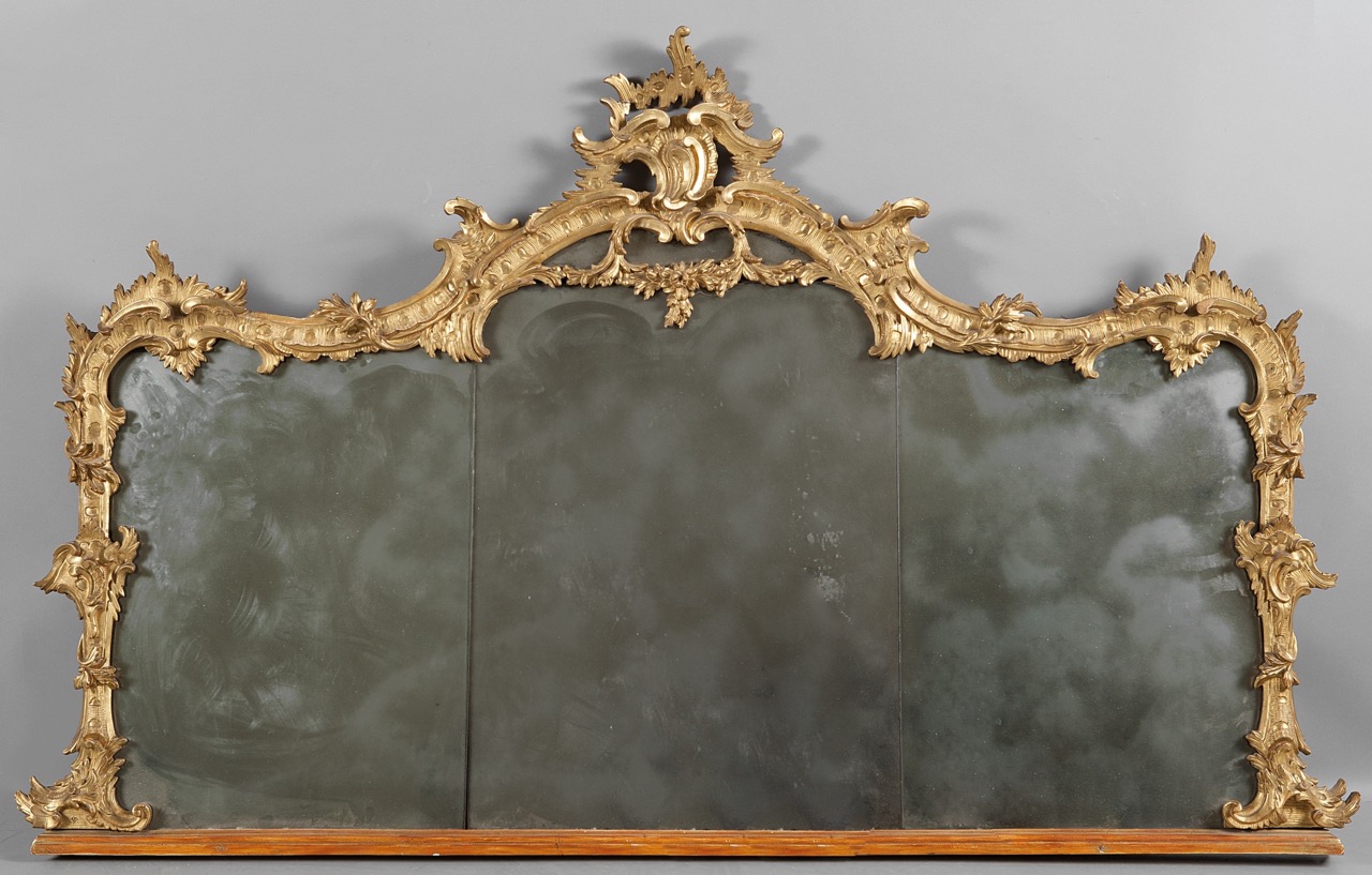 Caminiera Luigi XV in legno finemente intagliato e dorato a motivi vegetali, Roma secolo XVIII