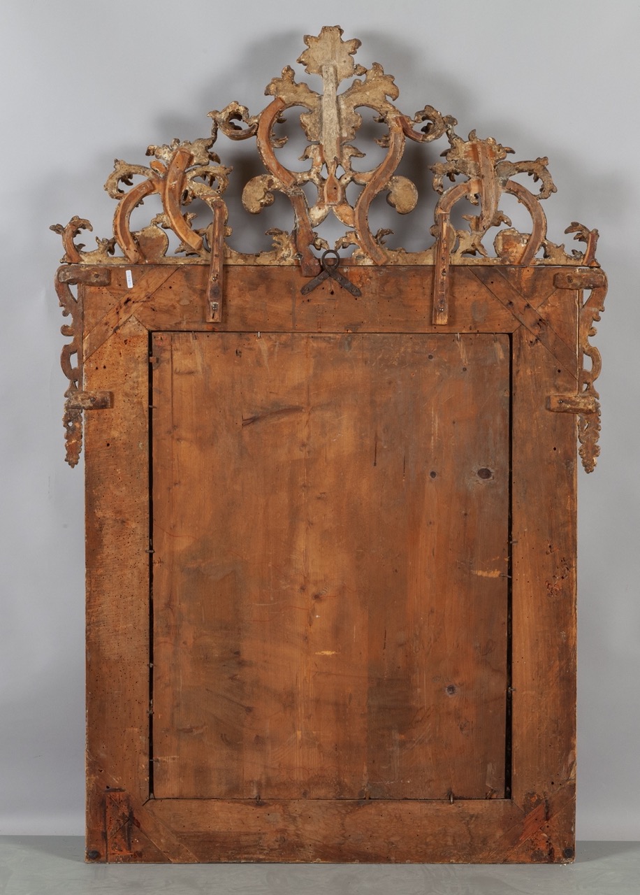 Specchiera Luigi XV in legno intagliato e dorato con controspecchi, Torino secolo XVIII