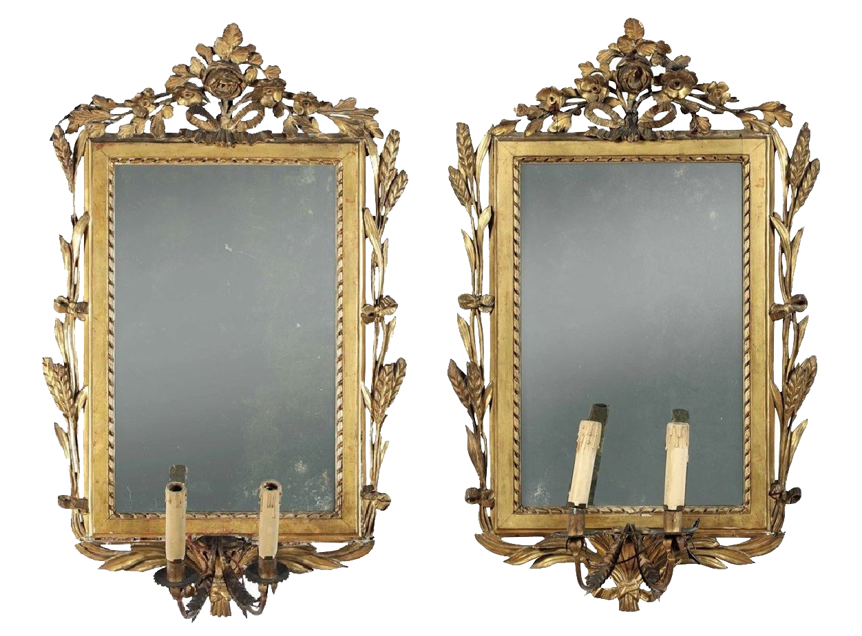 Due coppie di ventole Luigi XVI in legno intagliato e dorato a motivi di spighe di grano e fiori, Piemonte secolo XVIII