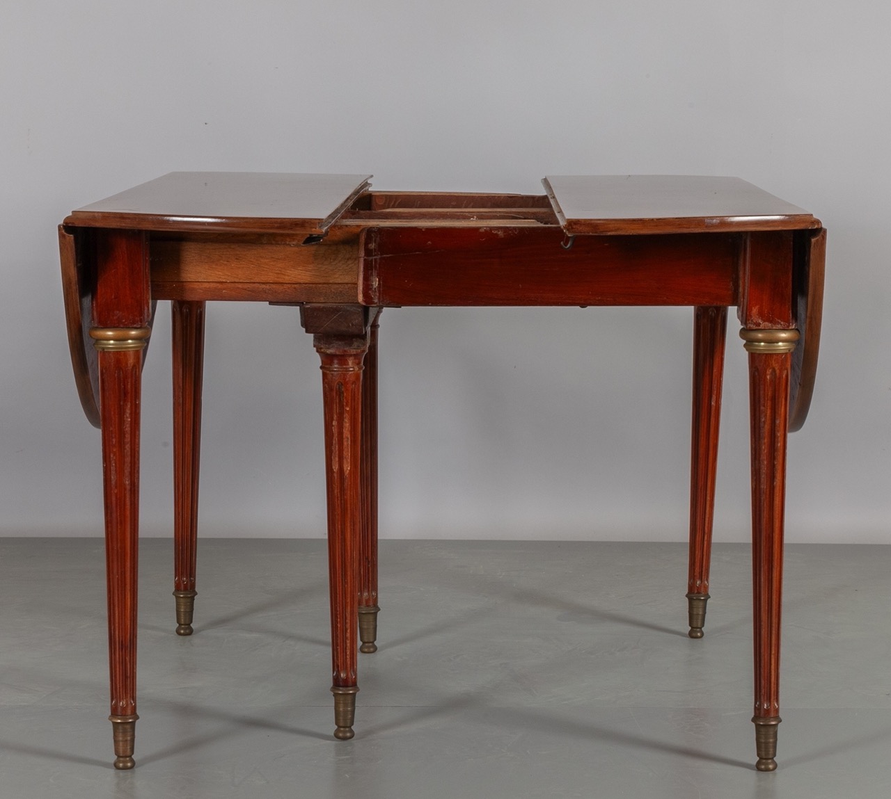 Tavolo allungabile con alette a sei gambe in mogano, Francia secolo XIX