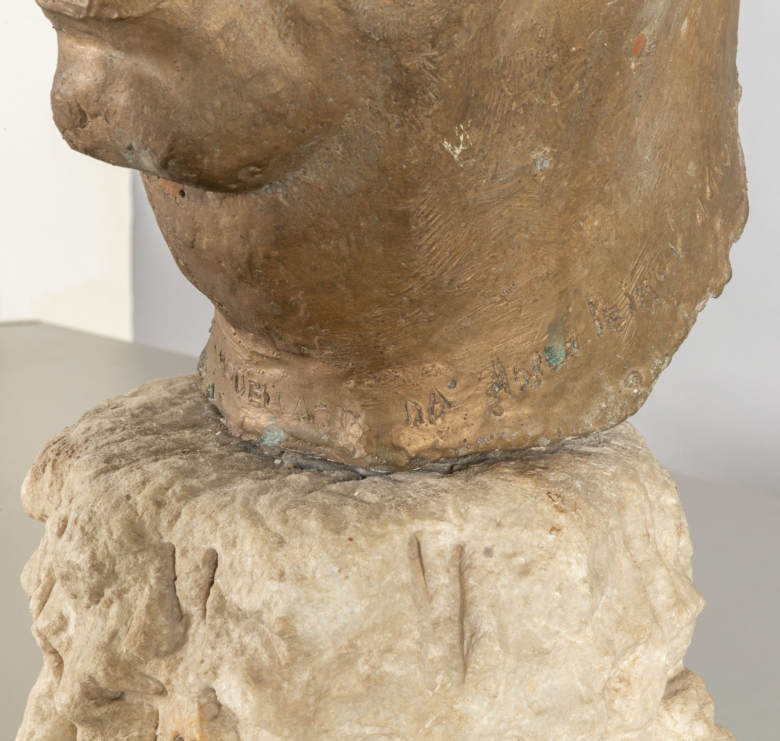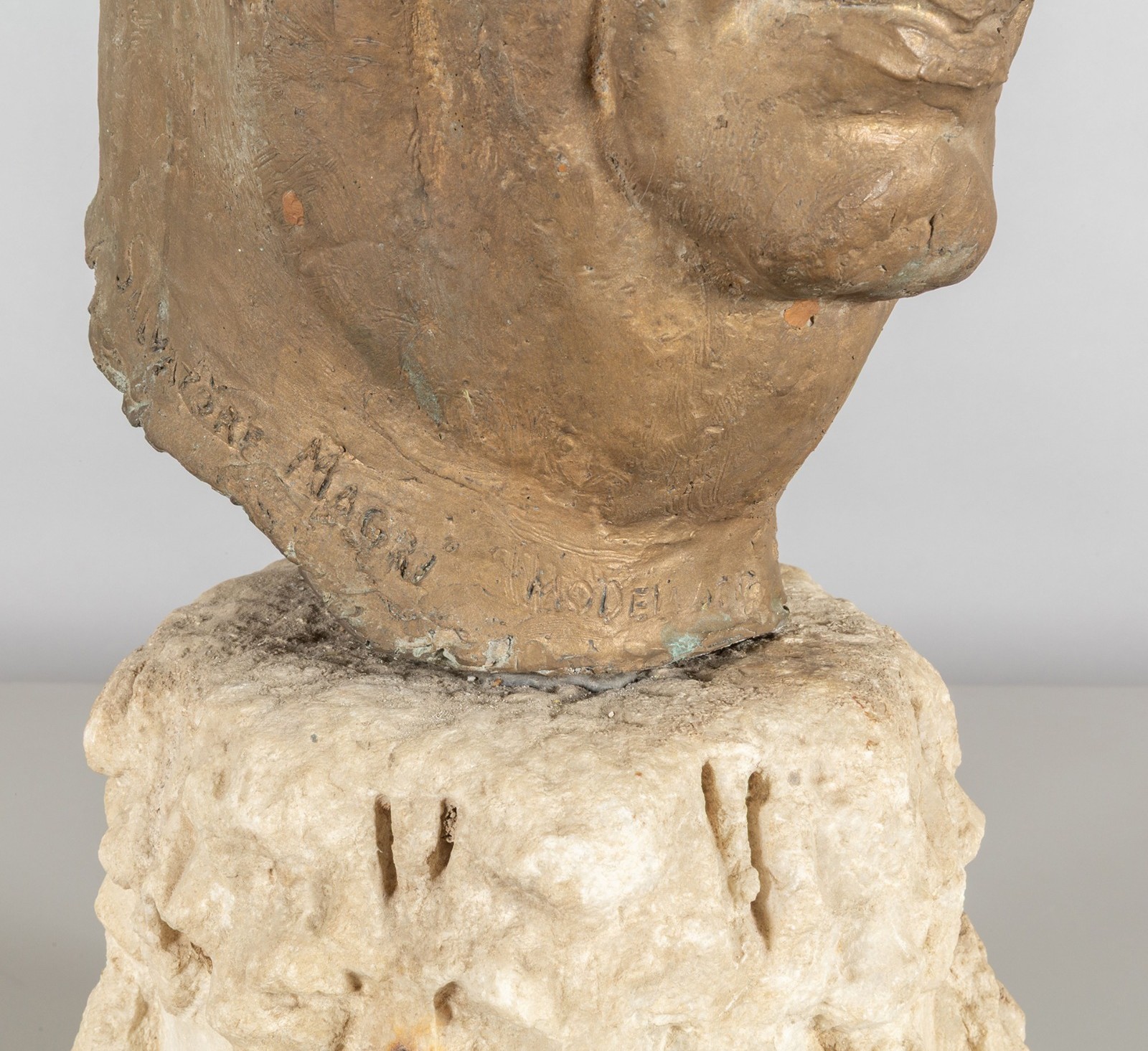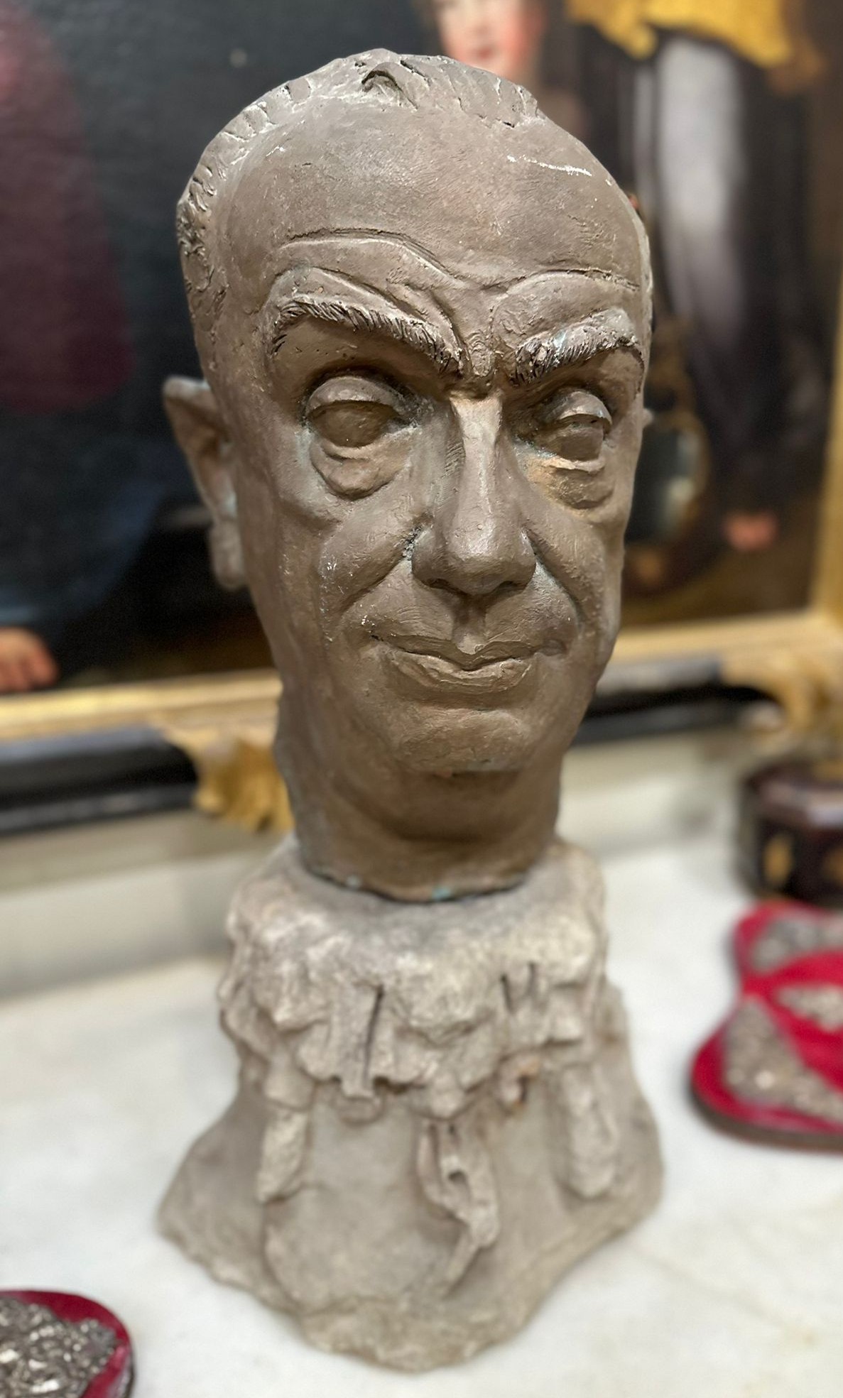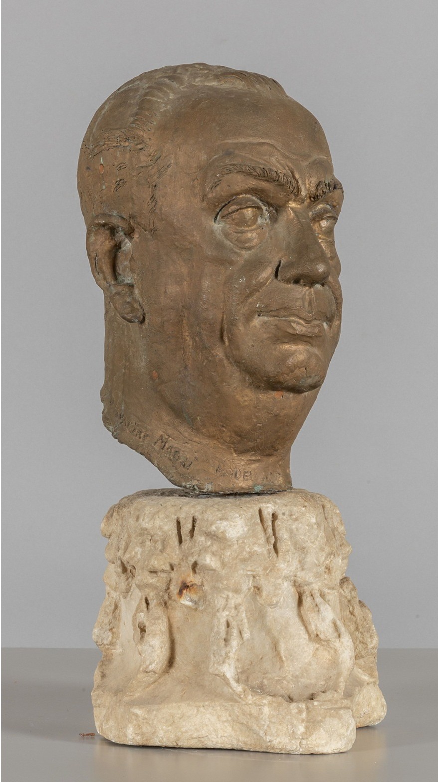 L’opera presenta una resa naturalistica dei tratti fisionomici, con particolare attenzione all’espressione del volto e alla modellazione plastica. Il supporto in marmo, di epoca medioevale, conferisce all’insieme un carattere monumentale.