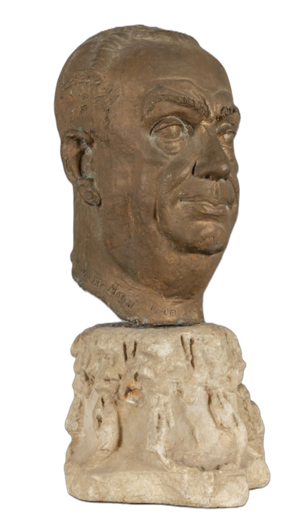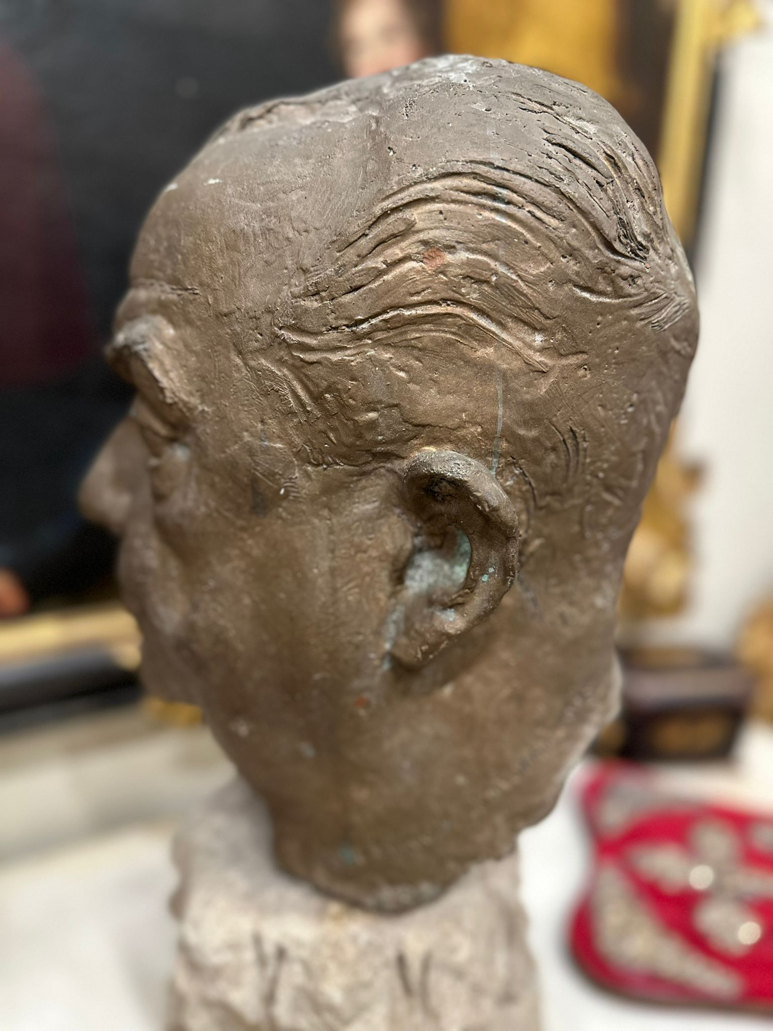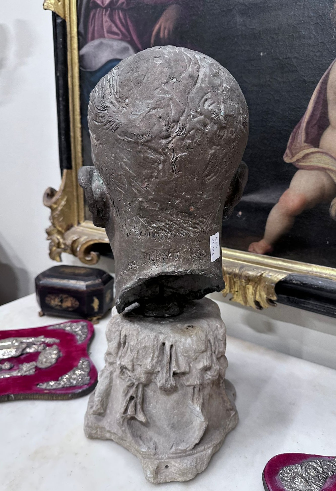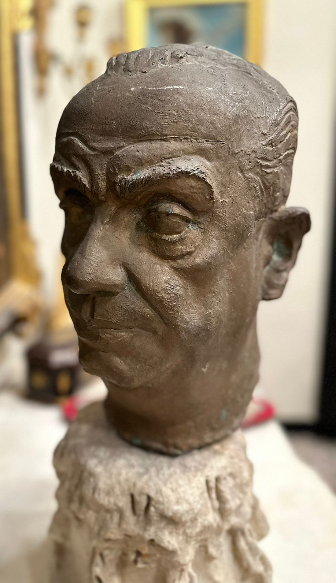 L’opera presenta una resa naturalistica dei tratti fisionomici, con particolare attenzione all’espressione del volto e alla modellazione plastica. Il supporto in marmo, di epoca medioevale, conferisce all’insieme un carattere monumentale.