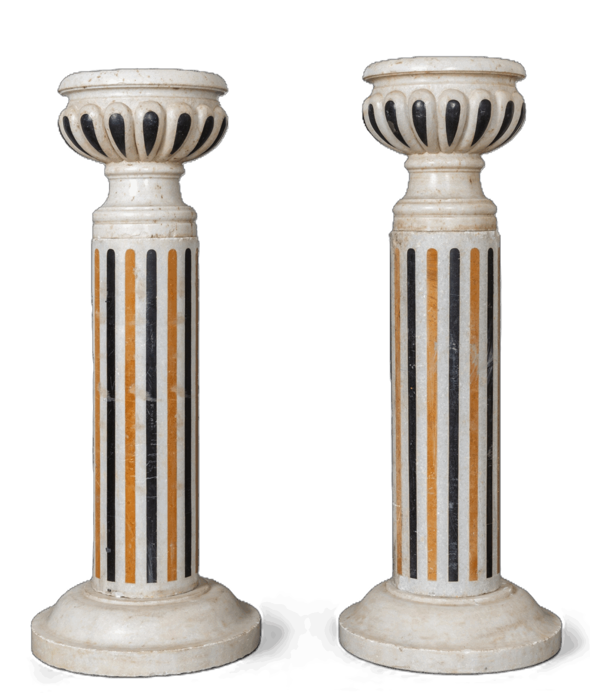 Poggianti su colonne in marmo intarsiato in nero del Belgio e giallo Siena.