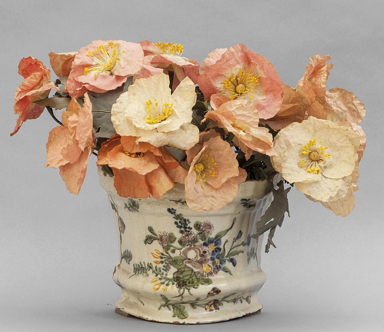 Portafiori in ceramica di Savona, decorazione policroma a fiori su fondo bianco, secolo XVIII