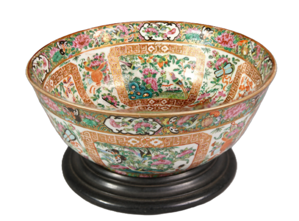 Coppa in porcellana decorata in accesa policromia a Fiori e uccelli, Cina, Canton secolo XIX