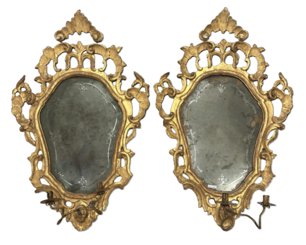 Coppia di ventole Luigi XV in legno finemente intagliato e dorato, Venezia metà XVIII secolo.