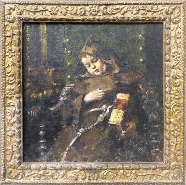 Vincenzo Irolli (Napoli 1860 1949), Il monaciello (Fratino), olio su tela firmato e datato 6-1947 in basso a destra